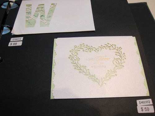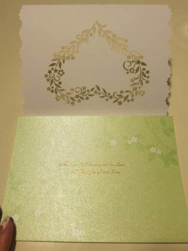 這一款婚卡是走三折的設計;有的是對折;也有是單卡的;就看個人喜好沒有一定要哪種才好?!!提醒準新人們;不要以為單卡就會比較便宜喔!經我一再比較;其實價格是不相上下的